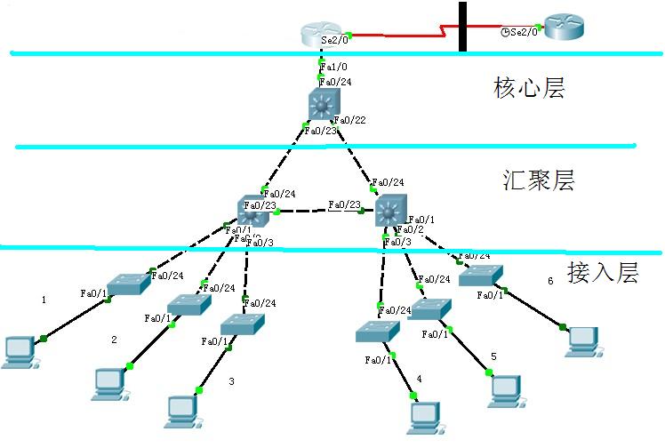通常將網(wǎng)絡(luò)中直接面向用戶連接或訪問網(wǎng)絡(luò)的部分稱為接入層,將位于接入層和核心層之間的部分稱為分布層或匯聚層,接入層目的是允許終端用戶連接到網(wǎng)絡(luò),因此接入層交換機(jī)具有低成本和高端口密度特性。匯聚層交換機(jī)是多臺接入層交換機(jī)的匯聚點(diǎn),它必須能夠處理來自接入層設(shè)備的所有通信量,并提供到核心層的上行鏈路,因此匯聚層交換機(jī)具備更高的性能,更少的接口和更高的交換速率。