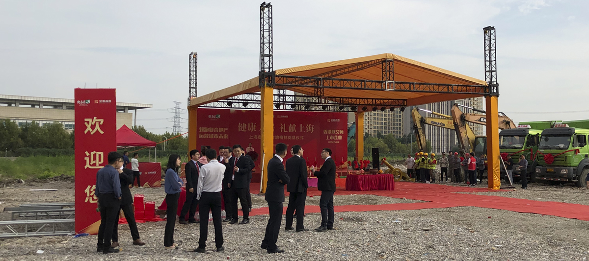 2020年9月26日,由奧園、金地商置等共同投資建設的,上海奧園·金地格林為打造健康人居獻禮上海。此次奠基儀式,在上海嘉定區(qū)彤聞路隆重舉行,它標志著上海奧園·金地格林項目的全面啟動。 上海古權電子科技有限公司為上海奧園·金地格林奠基儀式提供了專業(yè)音響、燈光、全場設備以及物料和現(xiàn)場技術等服務。