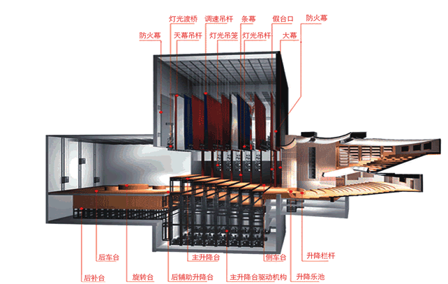 舞臺機(jī)械包括:臺上機(jī)械、臺下機(jī)械、升降舞臺、伸縮舞臺、旋轉(zhuǎn)舞臺、活動假臺口、燈光吊籠、燈光吊片、對開系統(tǒng)、舞臺機(jī)械電影銀幕架、升降系統(tǒng)、電動吊桿機(jī)、雙出軸電動吊桿機(jī)、單出軸電動吊桿機(jī)、一次排繩滾筒式電動吊桿機(jī)、手電兩用無級調(diào)速拉幕機(jī)、變頻調(diào)速拉幕機(jī)、電動對開拉幕機(jī);