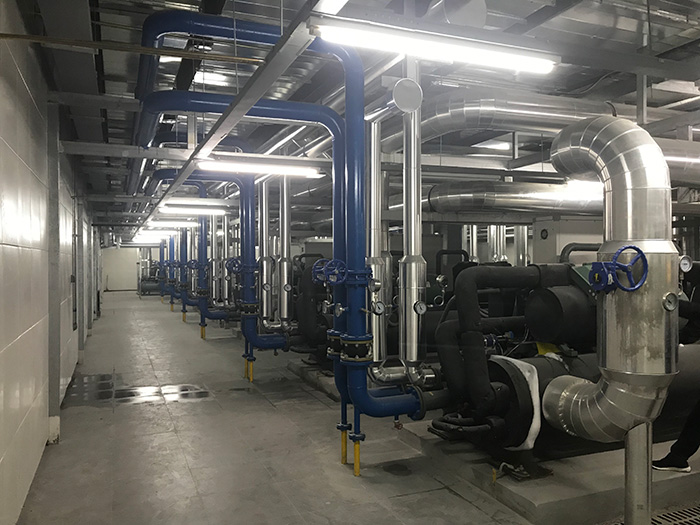 系統(tǒng)常規(guī)配套:制冷主機(jī)、冷卻塔、冷凍水水泵、冷卻水水泵、水箱、管道及閥門等。