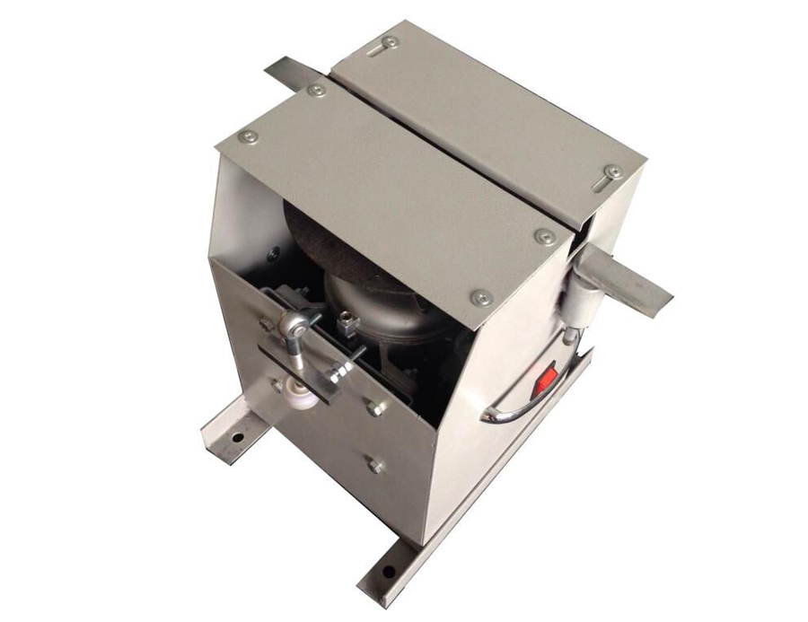 本產(chǎn)品結(jié)構(gòu)以電機(jī)為驅(qū)動(dòng)主體,配以支撐架,通過電機(jī)帶動(dòng)砂輪片轉(zhuǎn)動(dòng),通過更換砂輪片從而對(duì)各種速滑刀、花樣刀、冰球刀等刀刃進(jìn)行磨削。