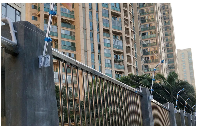 電子圍欄的阻擋作用首先體現(xiàn)在威懾功能上,金屬線上懸掛警示牌,一看到便產(chǎn)生心理壓力,且觸碰圍欄時(shí)會(huì)有觸電的感覺,足以令入侵者望而卻步;其次電子圍欄本身又是有形的屏障,安裝適當(dāng)?shù)母叨群徒嵌?,很難攀越;如果強(qiáng)行突破,主機(jī)會(huì)發(fā)出報(bào)警信號(hào)。